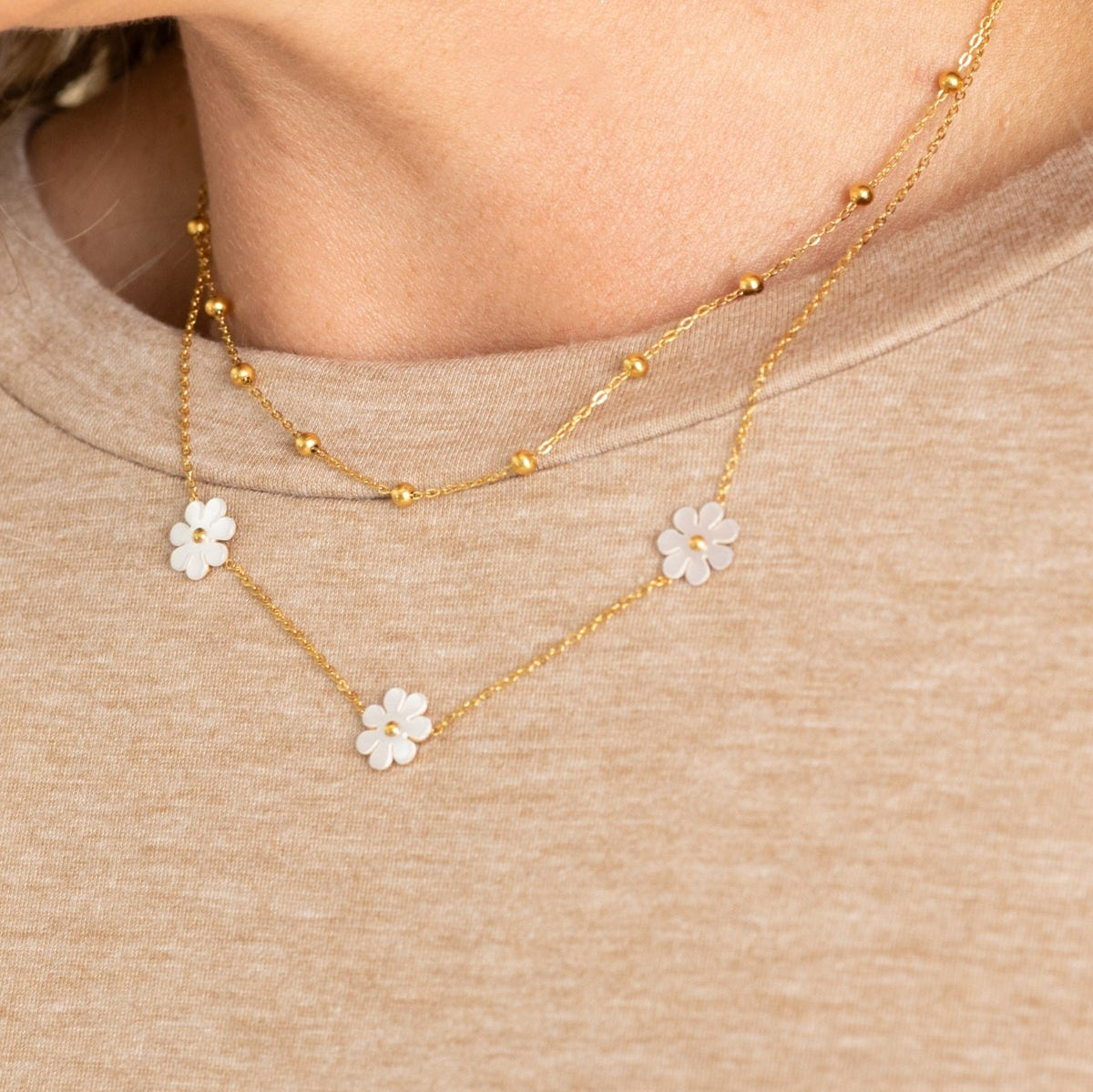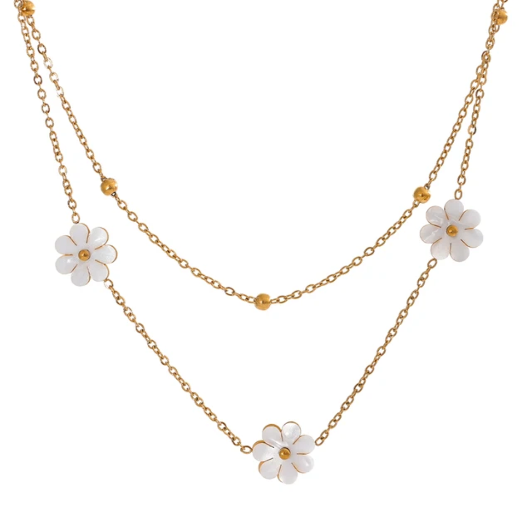 Dobbelt marguerit halskæde i 18 karat forgyldt rustfrit ædelstål