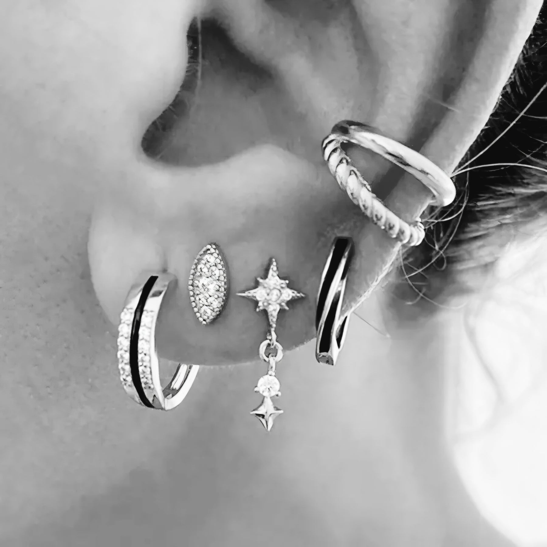Disse elegante hoops kombinerer klassisk luksus med et moderne twist. Øreringene er fremstillet i en blanding af sterlingsølv og sølvbelagt kobber, hvilket giver et eksklusivt udtryk og holdbar glans.