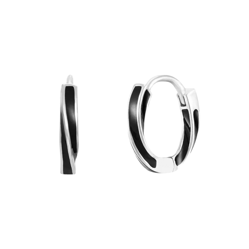 Designet fremhæves af en elegant sort emaljestribe, der snor sig let langs ringen og skaber en unik kontrast til det smukke sølv. Resultatet er et stilfuldt smykke, der kan bæres både til hverdag og fest.