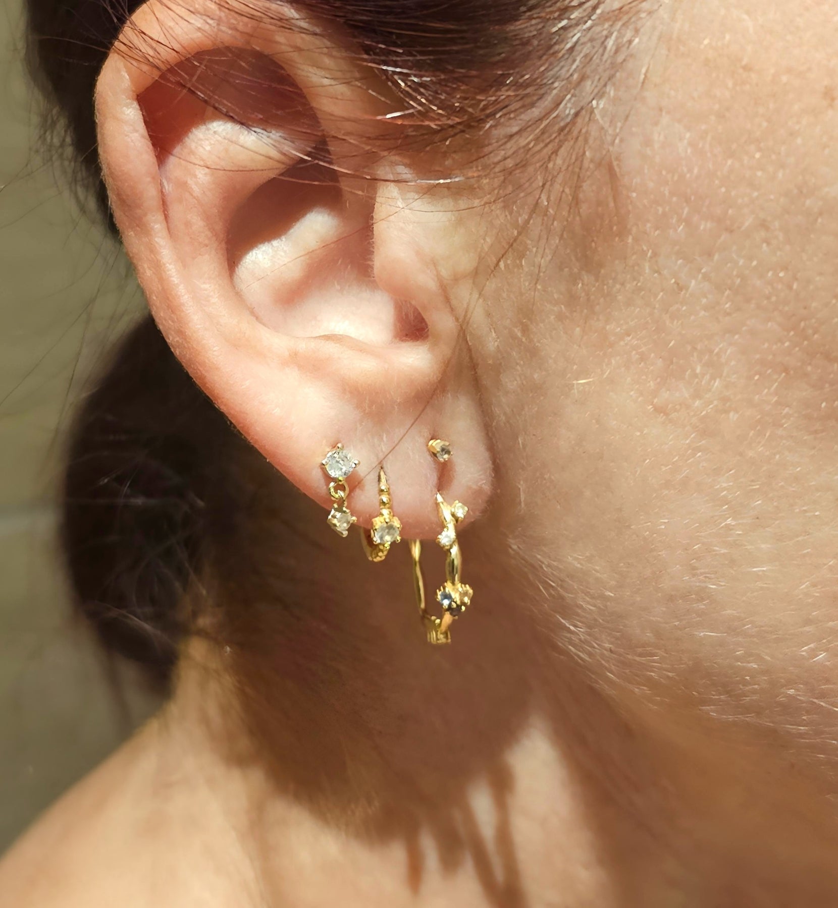 Dobbelt mini zirkon ørestikker i 18 karat forgyldt kobber og zirkoner