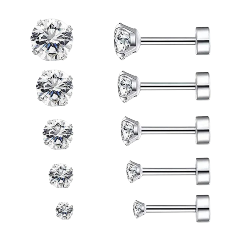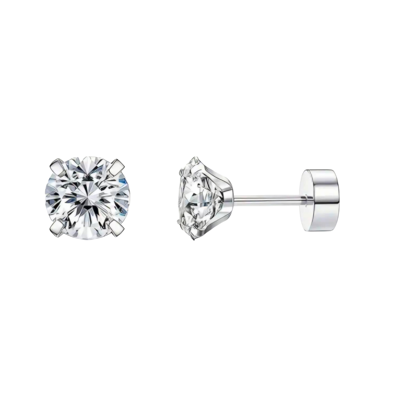 Ørestikker zirkon med flad lås i rustfrit ædelstål. Flere størrelser