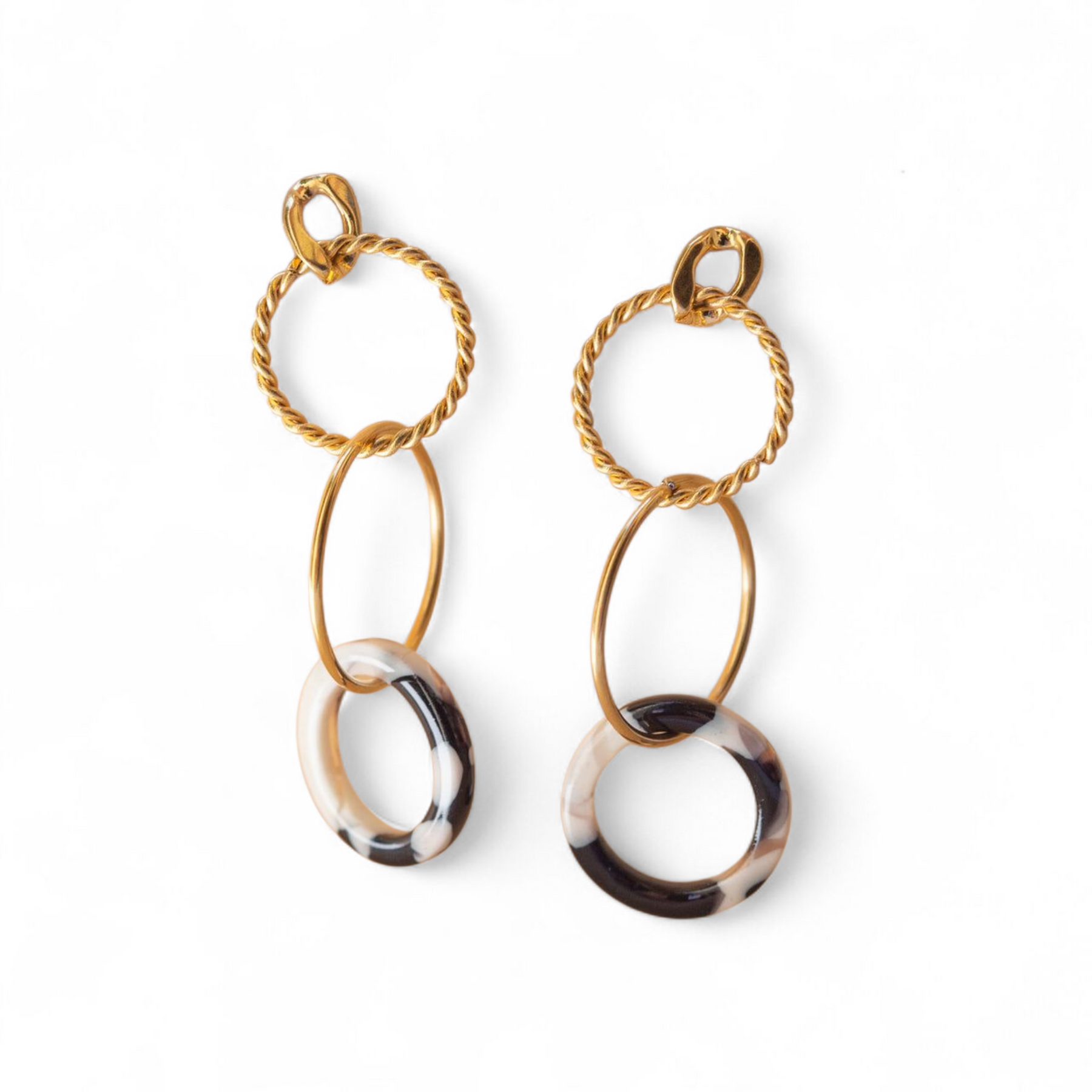 Super fine hængere, med flotte guld cirkler og en super flot sort/hvid ring.