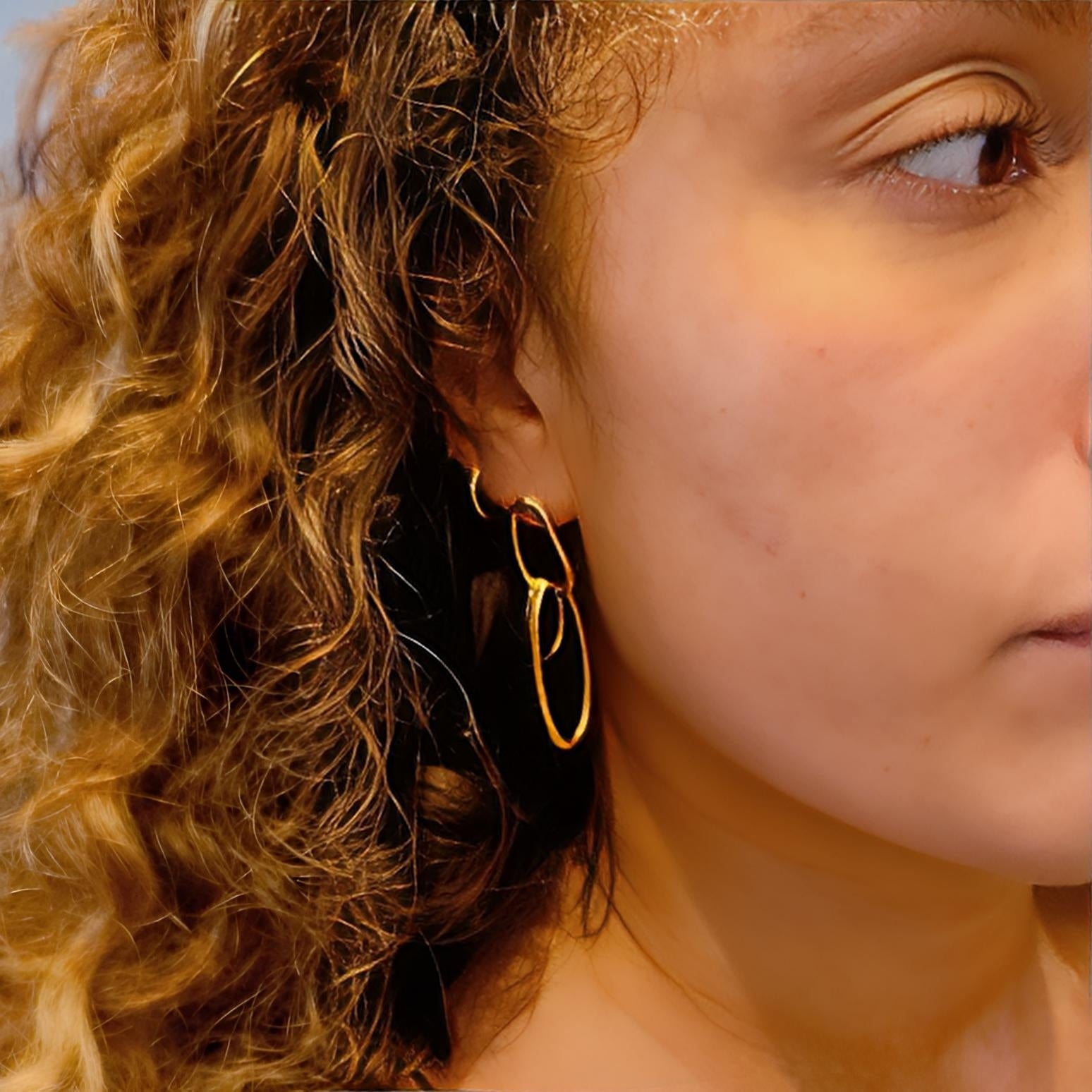 Ørestikker med ovale drop vedhæng i 18 karat forgyldt titanium