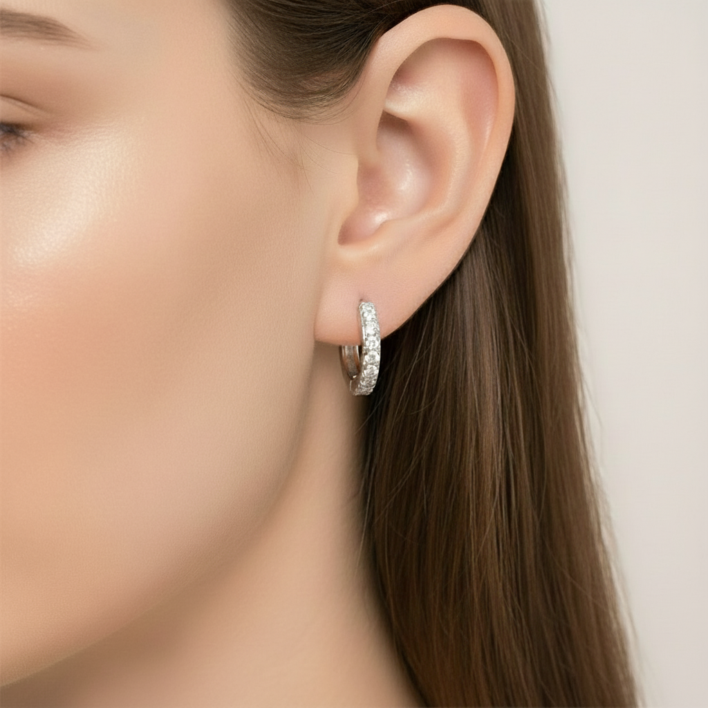 Hoops med hvide zirkoner i 925 sølvbelagt kobber