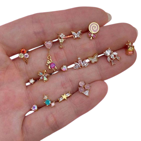 Lyserød krone ørestikker i 18 karat forgyldt 925 sterlingsølv