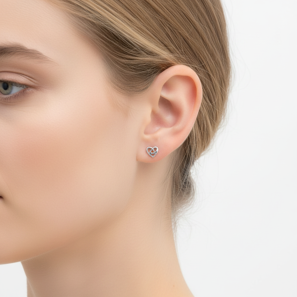 Ørestikker med åben snoet hjerte i 925 sterlingsølv