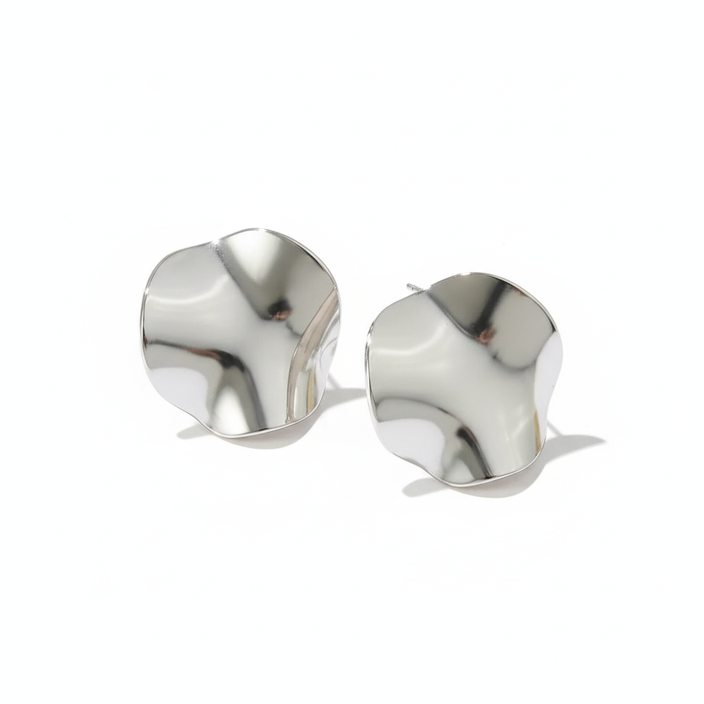 Disse statement ørestikker har et smukt, organisk design med bløde, bølgende former, der giver et eksklusivt og moderne udtryk. Den spejlblanke overflade reflekterer lyset elegant og skaber et stilrent look, der skiller sig ud uden at være for meget.