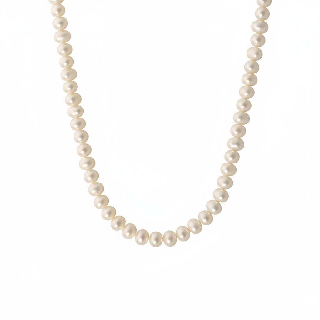 Giv dit look et touch af elegance med vores perlehalskæde fyldt med smukke barokperler. Denne fortryllende halskæde er lavet af 18kt. forgyldt kobber og har en justerbar længde på 37,5 cm med en ekstra 5 cm for tilpasning. De skønne 6,5 mm barokperler tilføjer en tidløs og unik charme til din stil.