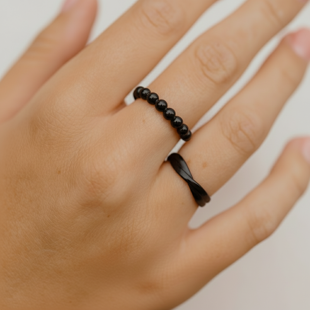 Fidget antistress ring i sortbelagt rustfrit ædelstål