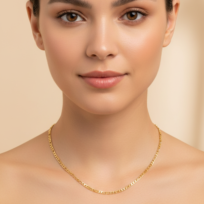 Vores forgyldte Figaro halskæde er et udtryk for tidløs elegance. Lavet i 18kt. forgyldt rustfrit stål. Halskæden er tilgængelig i både 3mm og 4mm bredde, så du kan vælge den, der passer bedst til din stil. Med en justerbar længde på 30+10 cm tilpasses den nemt efter dit ønske. Denne halskæde er en perfekt balance mellem enkelhed og luksus, der vil forstærke dit look på enhver lejlighed.
