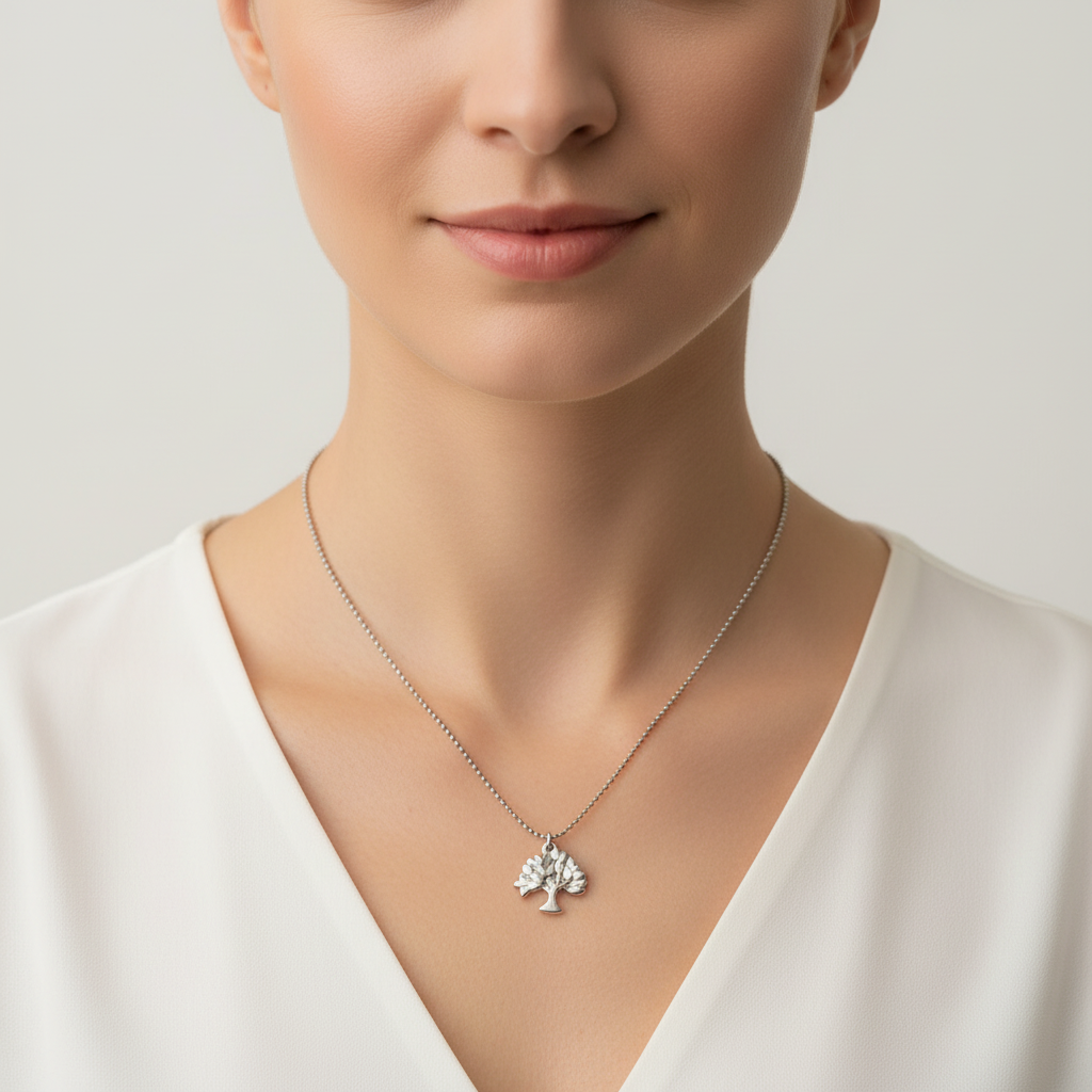 Oplev skønheden i vores kugle halskæde med Livets træ vedhæng. Denne halskæde er en ægte statement-maker, med sin strålende design og håndværk. Lavet af rustfrit ædelstål og med en justerbar længde på 41 cm til 43ø5 cm, den er perfekt til at forbedre din elegance til enhver lejlighed. Et smykke, der stråler med en luksuriøs glans.
