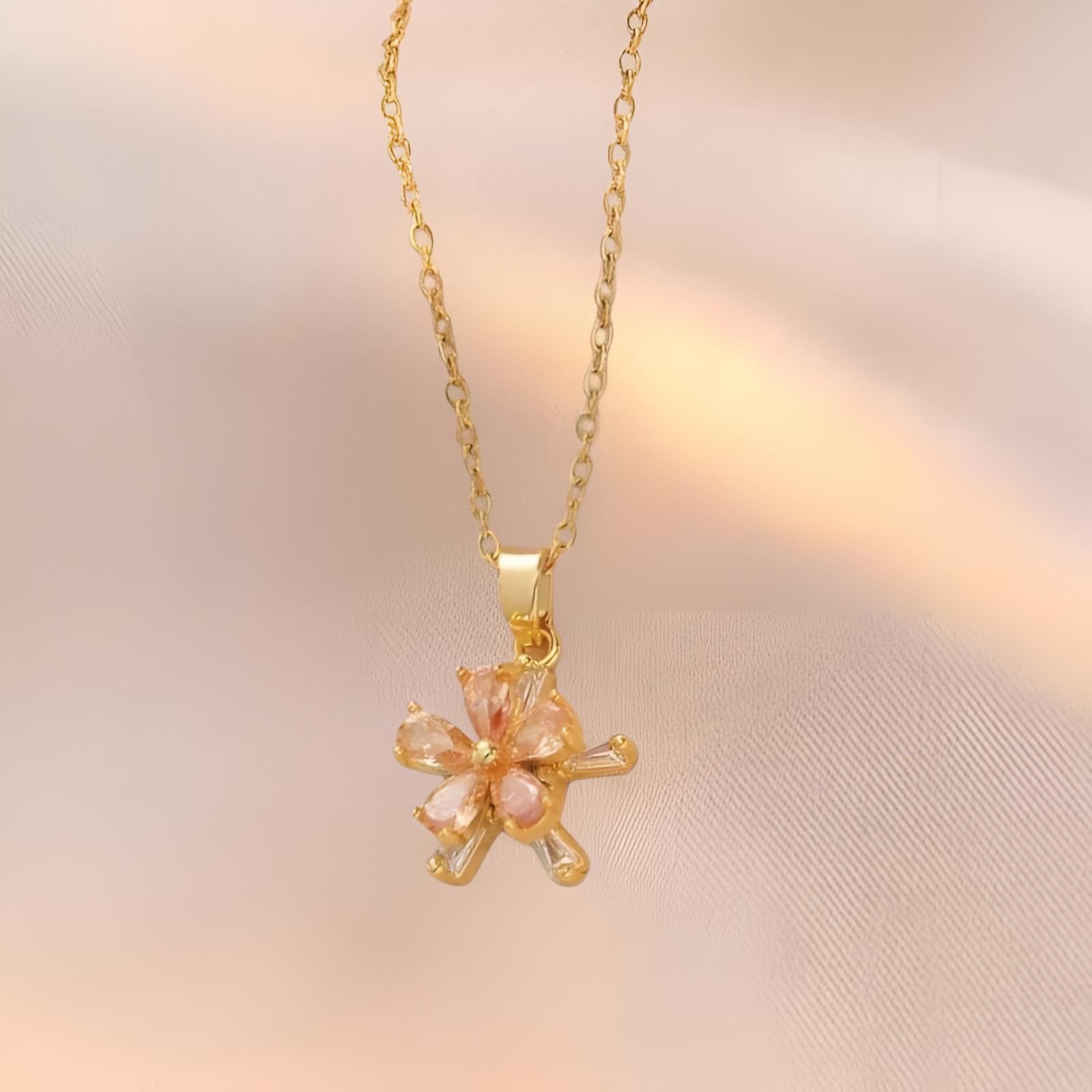 Halskæde med roterende fidget spinner blomst i forgyldt ædelstål og kobber
