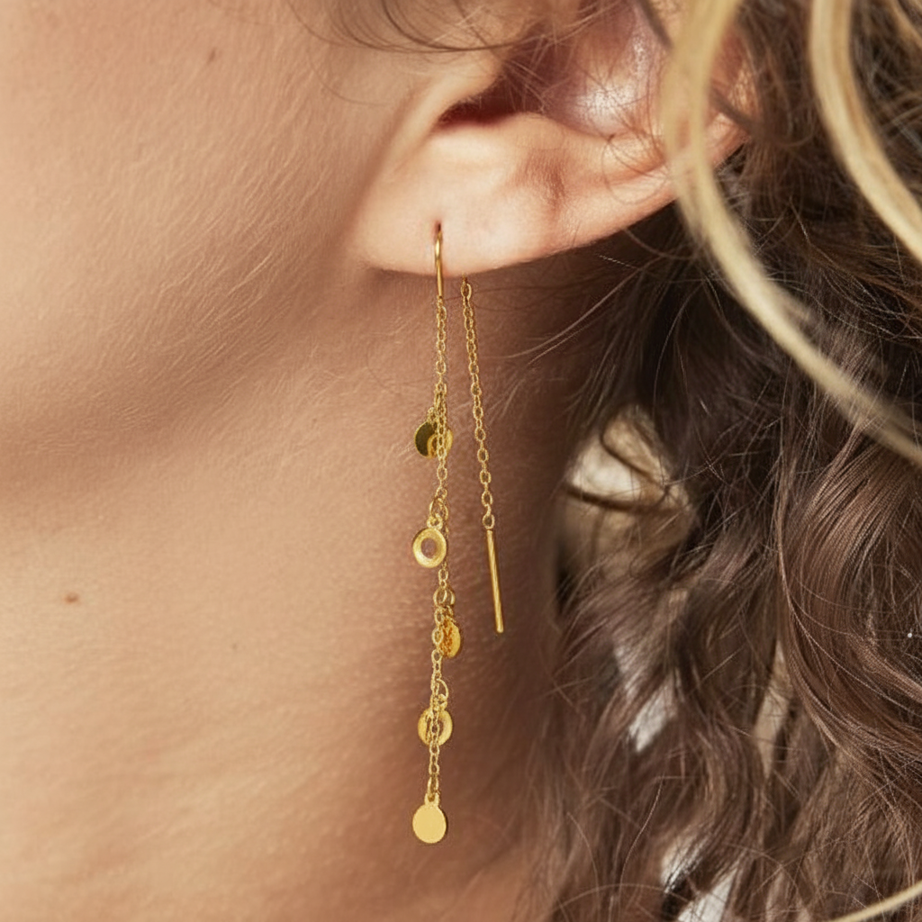 Ørekæder med hængende cirkler i 18 karat forgyldt stål