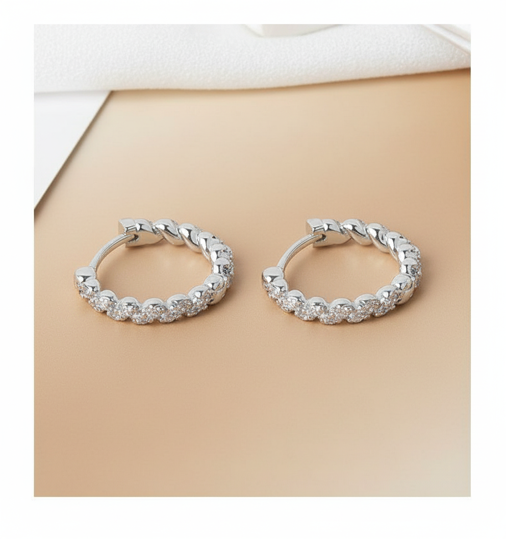 Små Hoops med Hvide Zirkoner i forsølvet Kobber