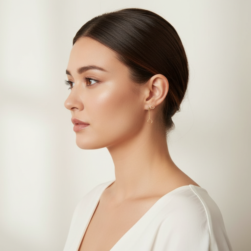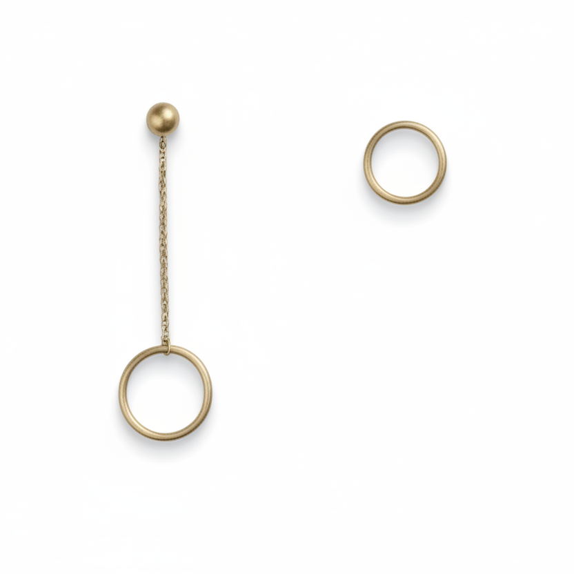 Ørestikker åben rund med kæde i 18 karat forgyldt kobber
