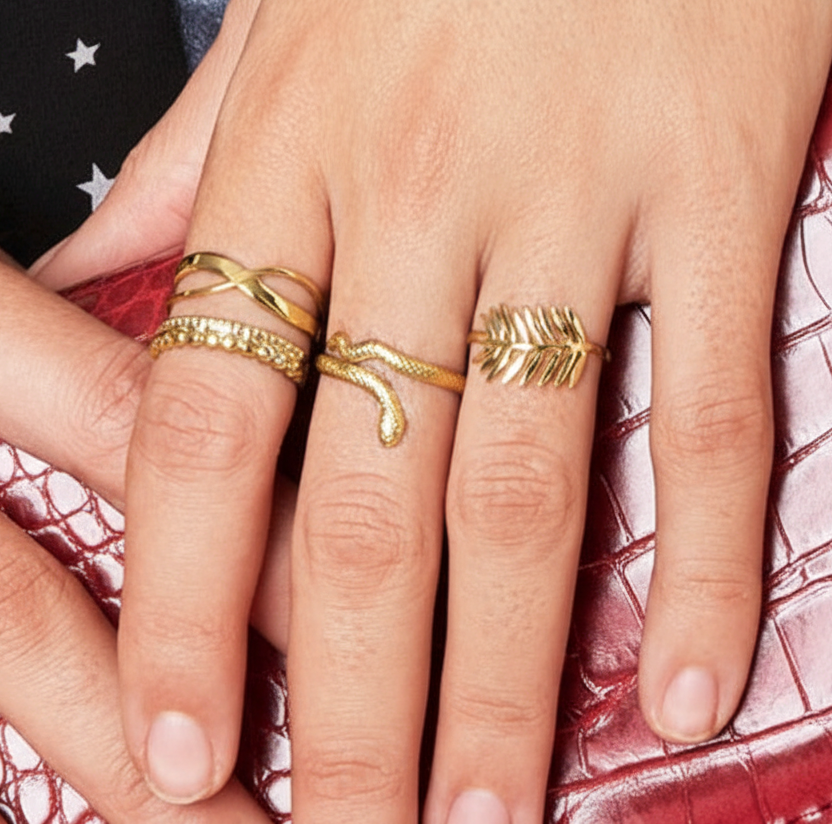 Ring formet som blad i 18 karat forgyldt ædelstål