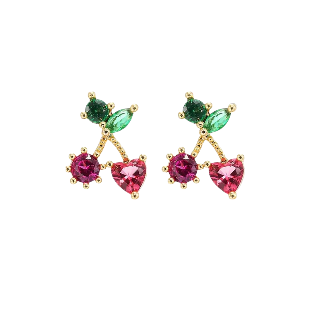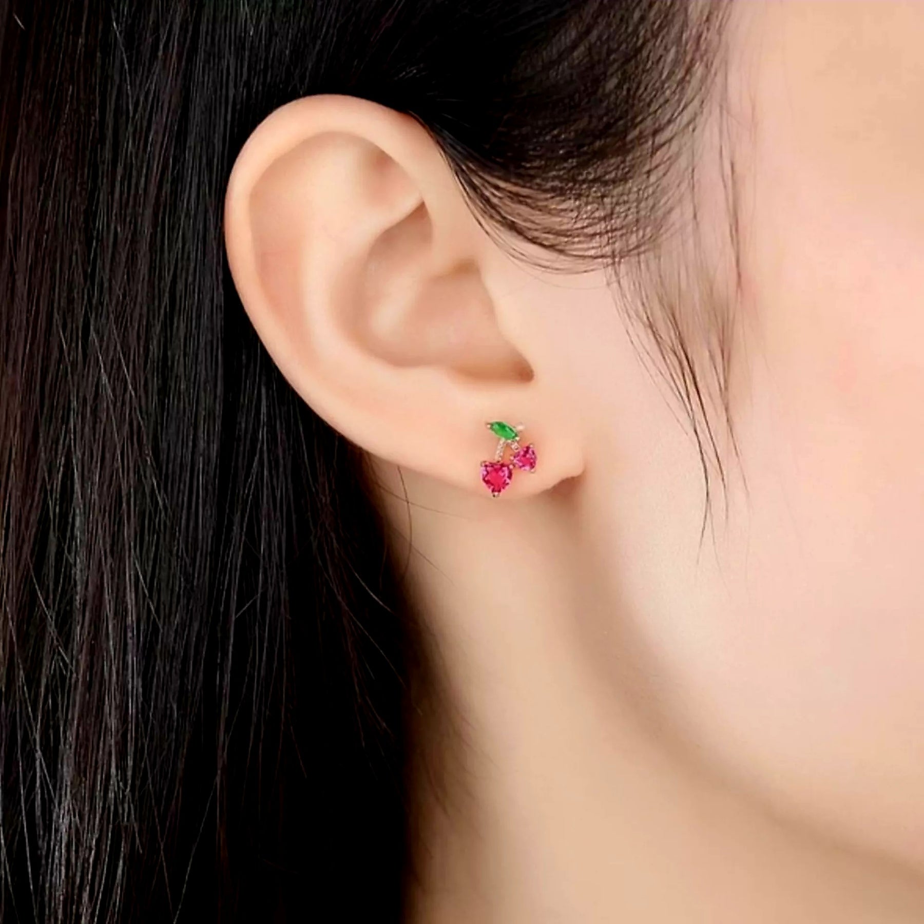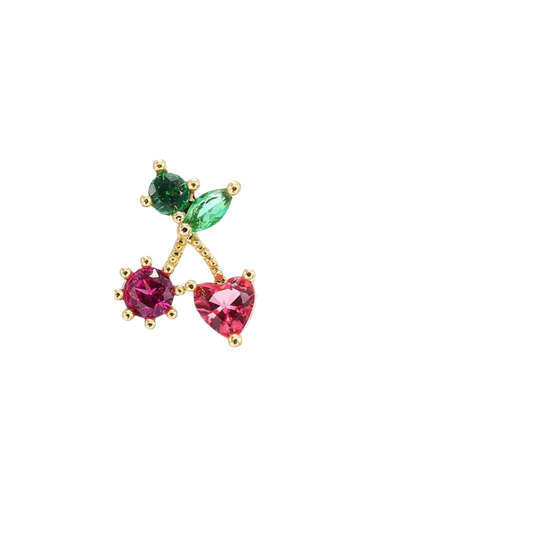 Ørestikker kirsebær/hjerte med kuglelås i 18 karat forgyldt ædelstål