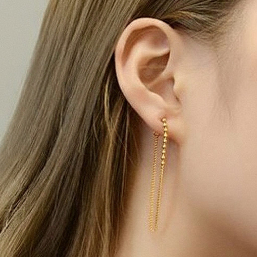 Ørestikker med kugle kæder i 18 karat forgyldt titanium