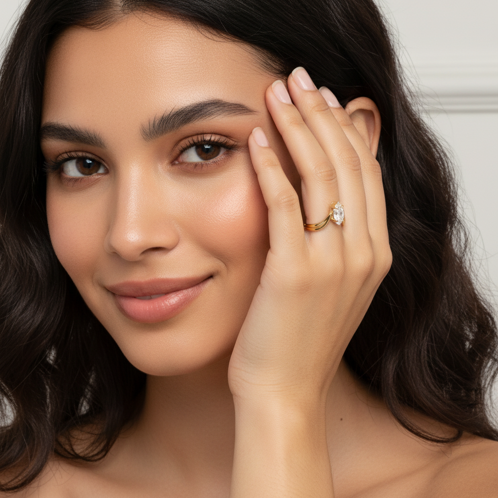 Marquise Ring i 18 karat Forgyldt Ædelstål