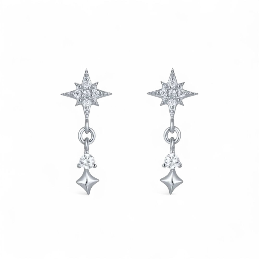Tilføj et strejf af stjerneklar elegance til dit look med disse feminine og iøjnefaldende øreringe. Øreringene er designet med en funklende stjerneform, smukt besat med klare zirkoner, der glimter ved hver bevægelse. Under stjernen hænger en lille dråbeformet detalje, som giver øreringene et let og sofistikeret udtryk. Sælges parvis