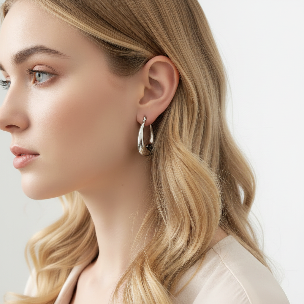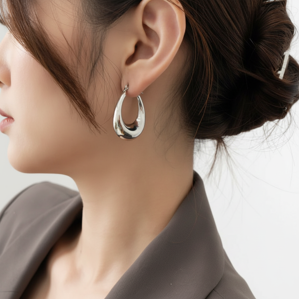 Fremstillet i ædelstål, er de både holdbare og modstandsdygtige over for slid, så du kan nyde deres glans i lang tid. Den ovale form giver et sofistikeret twist til de traditionelle hoops, og den lette vægt sikrer en komfortabel pasform hele dagen.