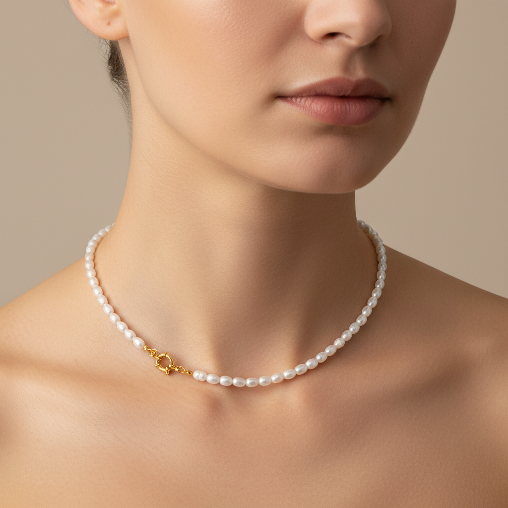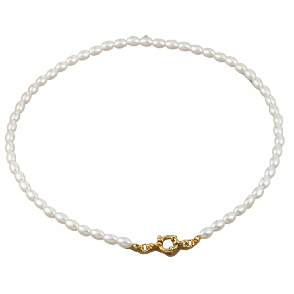 Perle halskæde med ovale 5mm. Perler i 14 karat forgyldt rustfrit ædelstål