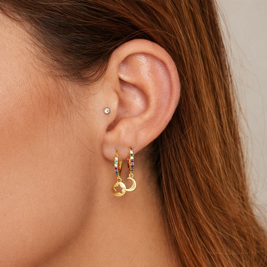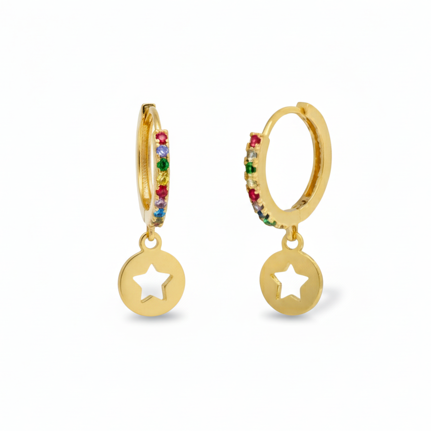 Smukke Rainbow øreringe med et skønt stjerne vedhæng og zirkon sten