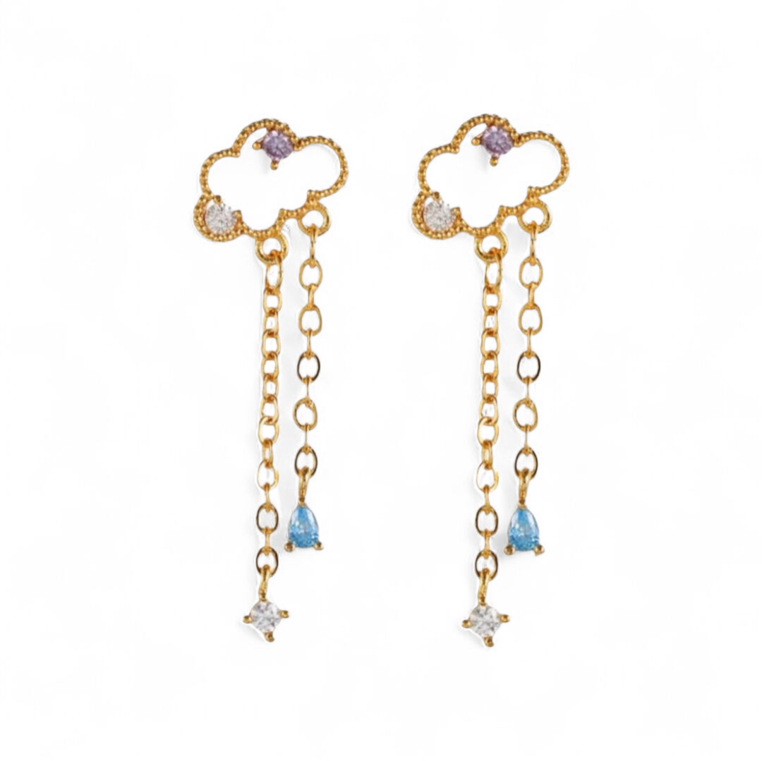 Hænge ørestikker med skyer og blå sten i 18 karat forgyldt kobber