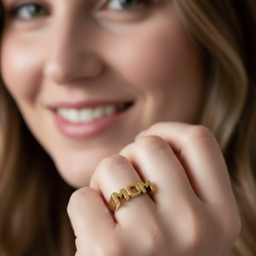 MOM ring i 18 karat forgyldt rustfrit ædelstål