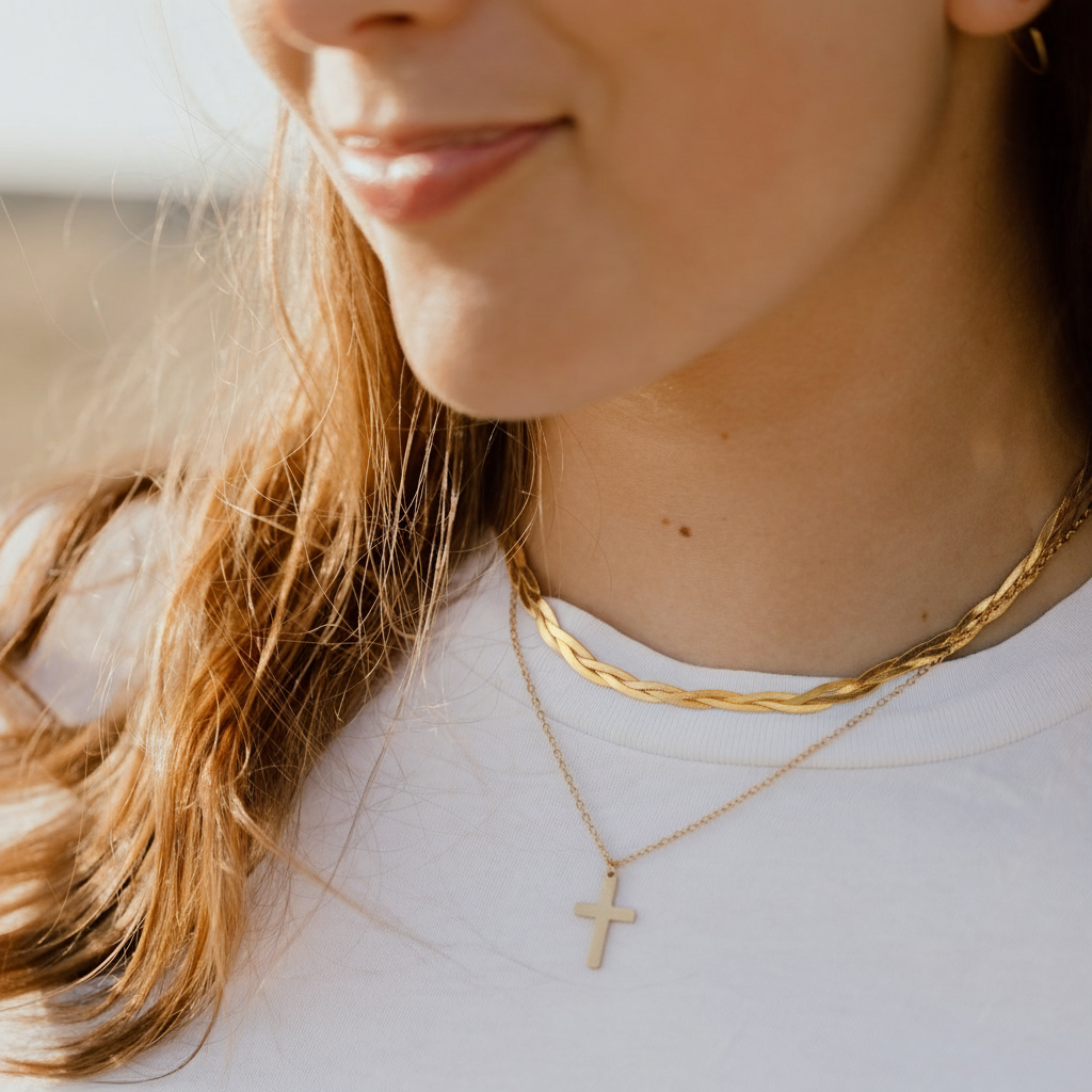 Opdag vores sensationelle halskæde, der vil tage din stil til nye højder. Denne udsøgte halskæde er flettet af tre strålende flatsnake-kæder, der skaber en betagende visuel effekt. Lavet af 18 kt. forgyldt rustfrit stål, udstråler den en sublim elegance og holdbarhed. Tag imod luksus og sofistikation med denne uimodståelige halskæde, der vil tilføje en prægtig finish til enhver outfit.