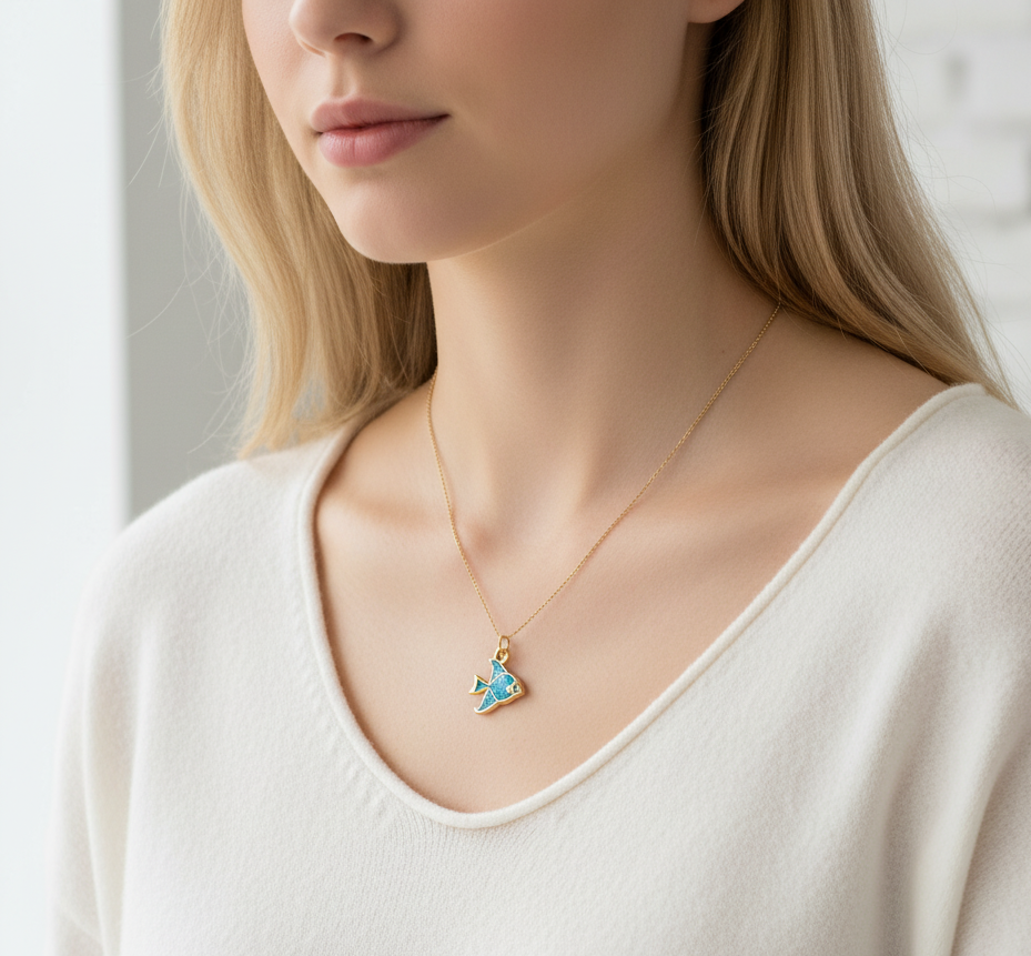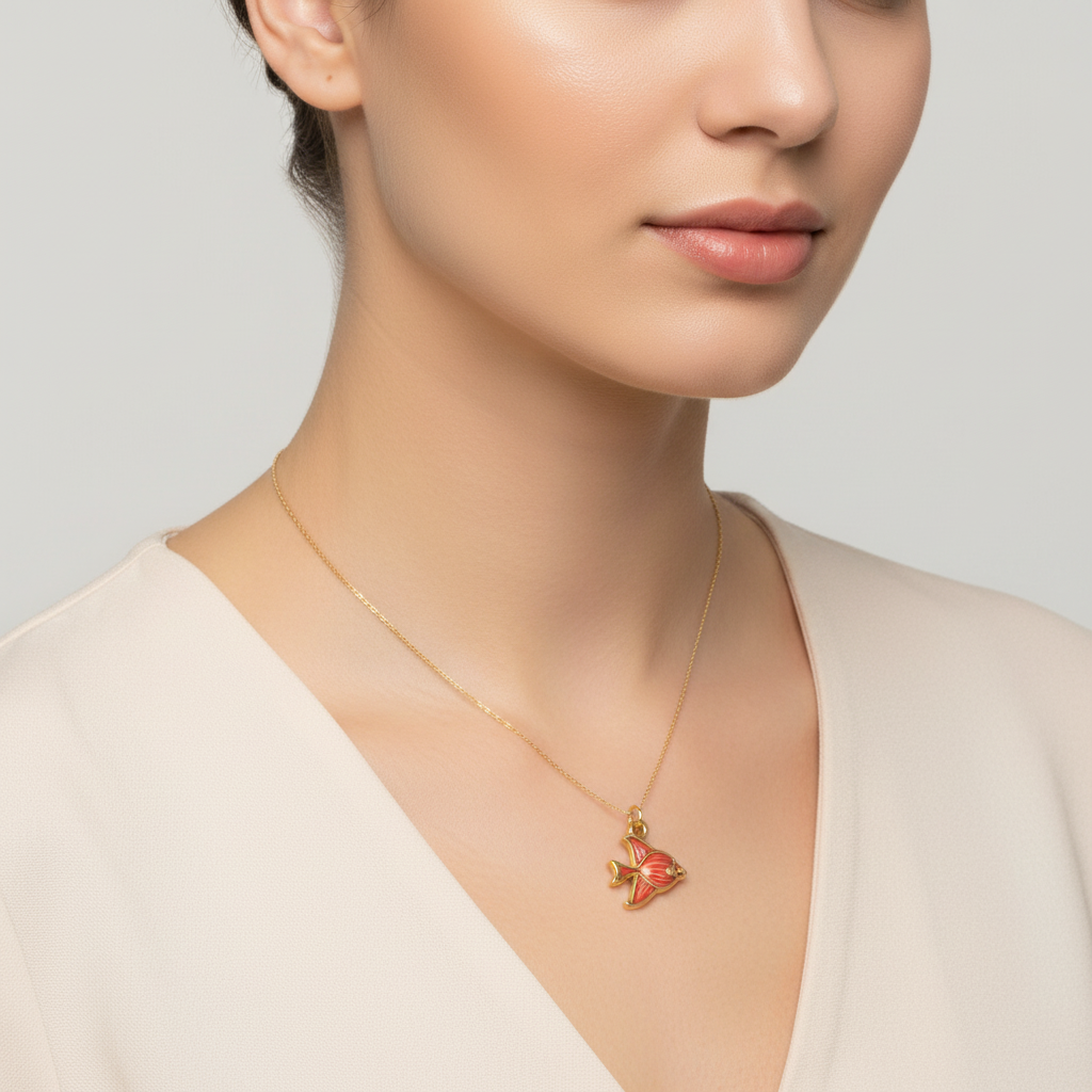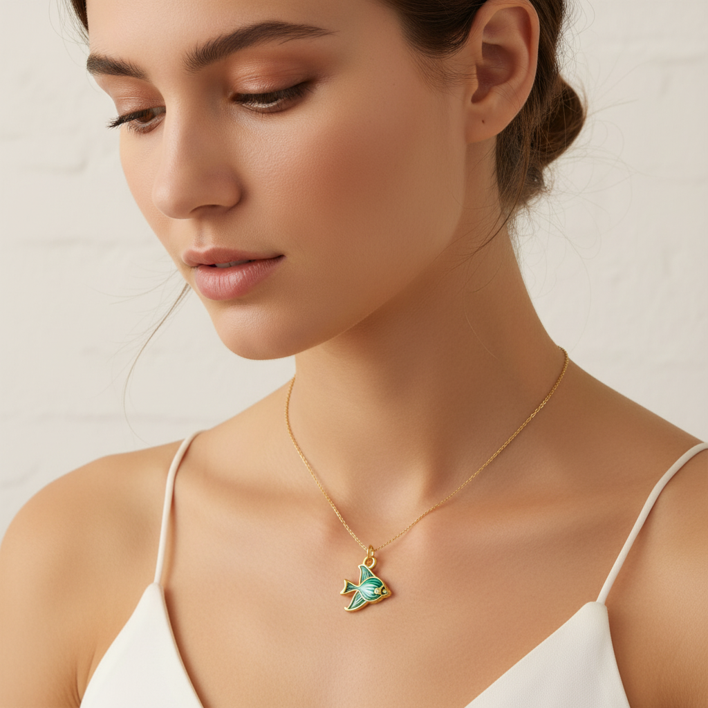 Farvestrålende og detaljerede fiskevedhæng i forgyldt rustfrit ædelstål med emalje i grøn, blåglitter, rødbrun eller rød. Et legende og livligt vedhæng, der bringer havets magi ind i dine smykker. Brug dem i halskæder, armbånd eller øreringe for et personligt touch – perfekte til sommerlooks eller havinspirerede designs.