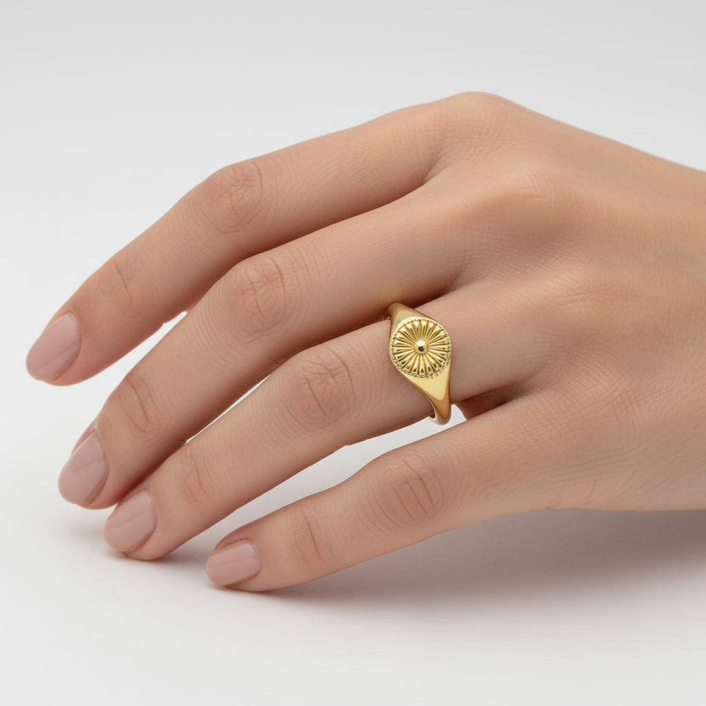 Fin ring med solstråler.