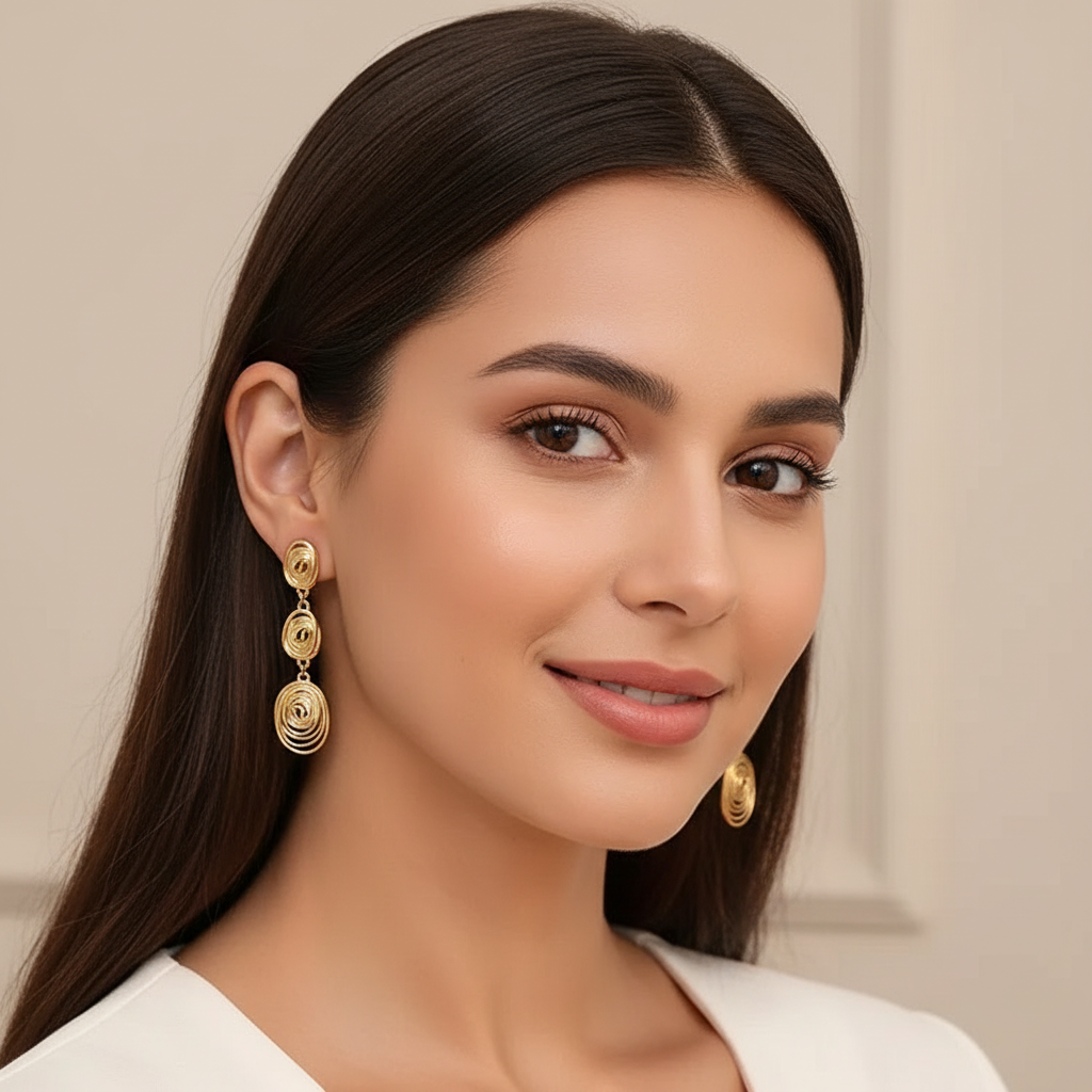 Organiske triple flow øreringe i 18 karat forgyldt ædelstål