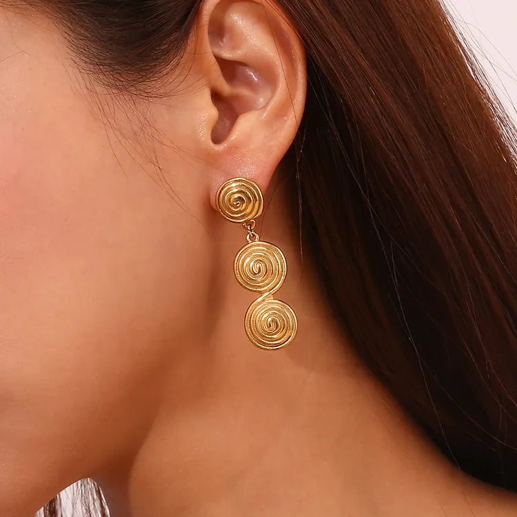 De her swirl-øreringe i 18K forgyldt stål giver instant glow og et cool statement-look.