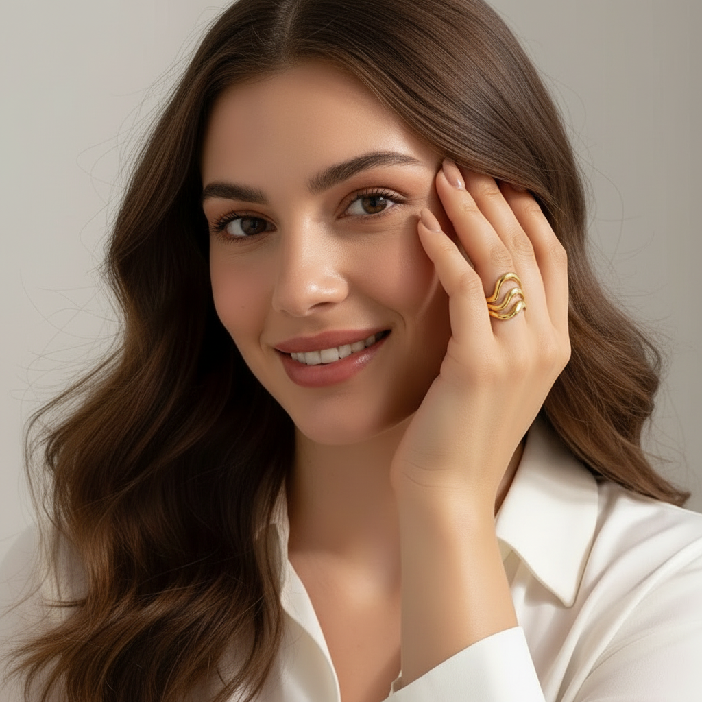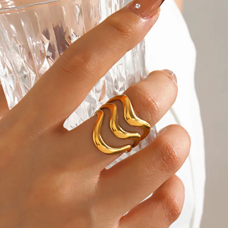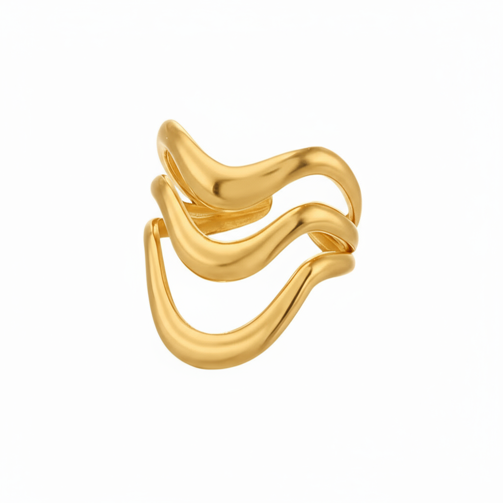 Triple wave ring i 18 karat forgyldt ædelstål